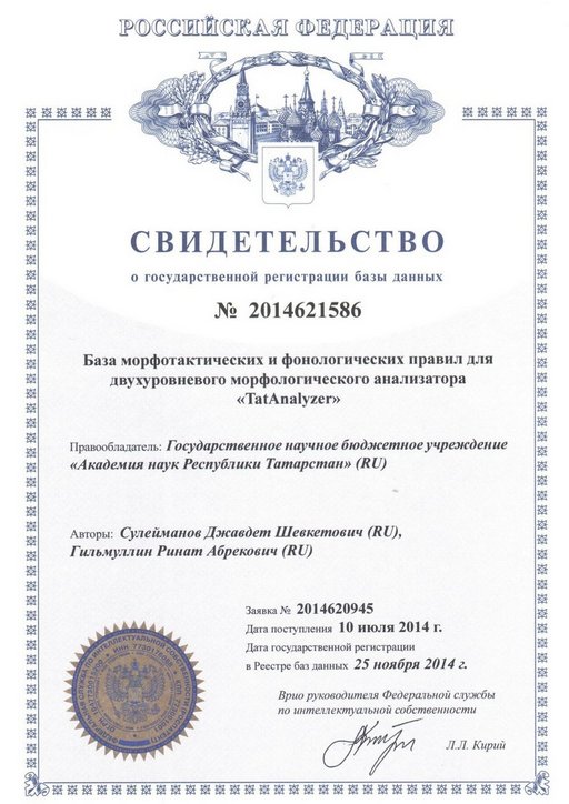 База морфотактических и фонологических правил для двухуровневого морфологического анализатора «TatAnalyzer»