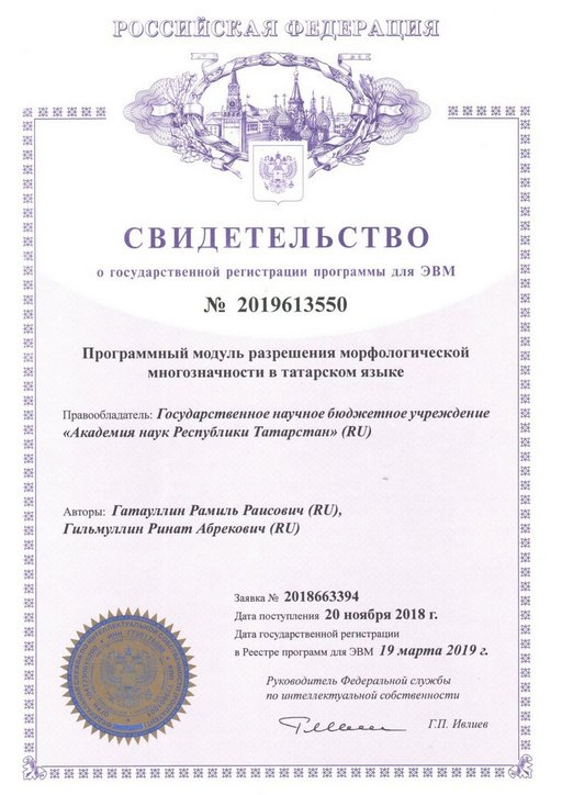 Программный модуль разрешения морфологической многозначности в татарском языке