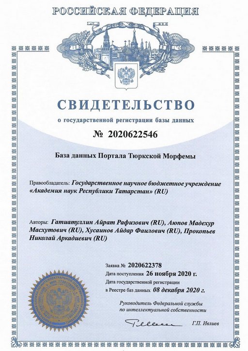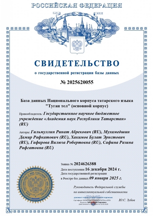 База данных Национального корпуса татарского языка «Туган тел» (основной корпус)