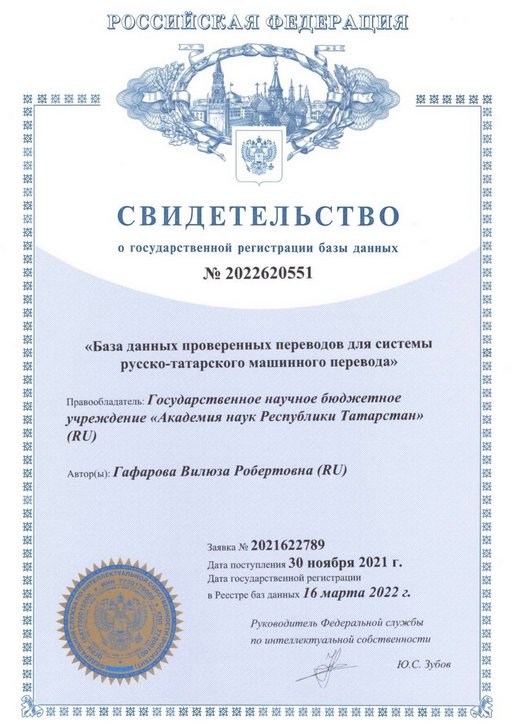 Русско-татарский машинный переводчик для нужд населения, организаций и ведомств Республики Татарстан