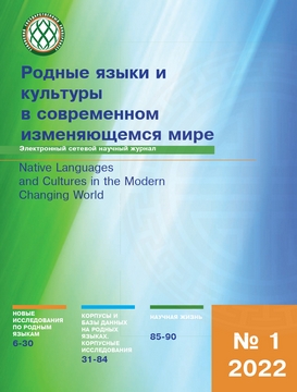 Журнал "Родные языки и культуры в современном изменяющемся мире", выпуск №1 2022 (включает труды конференции TurkLang-2021)